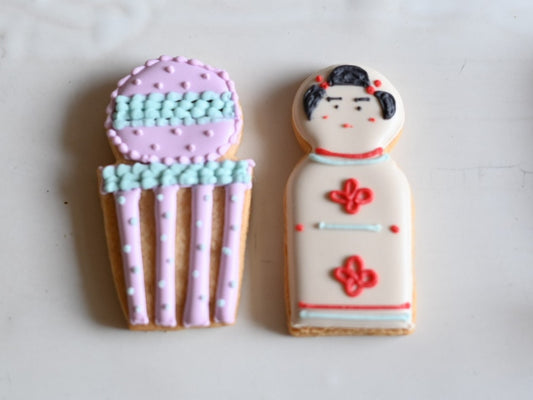 素焼きのクッキーにかわいい「こけし」と「七夕」の絵をアイシングクリームでデコレーションできます。さらに、お持ち帰り用の箱とアイシングペンもプレゼント!